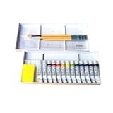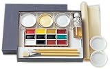 吉祥 顔彩セット(か12) 価格: 5,985円 レビュー評価: レビュー数: 顔料に、天然高級デンプン質と膠分を加え、練り混ぜ角皿に入れて乾燥させたものです。日本画材料の中では特に普及しています。色調は透明型淡彩色で、俳画、南画、日本画調繊細画などのほか、ハガキなどの挿し絵、岩絵具の下塗り、写生用などに使用します。 【セット内容】顔彩12色セット、膠液、彩色筆、面相筆、鉄鉢金・銀、胡粉、 絵皿2枚、運筆用紙、化粧箱入※表示の色見本はイメージカラーです。ブラウザの設定などにより、実際とは多少 異なる場合があります。 |