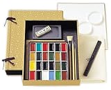 吉祥 顔彩墨彩画セットNo.1 価格: 8,715円 レビュー評価: レビュー数: 顔料に、天然高級デンプン質と膠分を加え、練り混ぜ角皿に入れて乾燥させたものです。日本画材料の中では特に普及しています。色調は透明型淡彩色で、俳画、南画、日本画調繊細画などのほか、ハガキなどの挿し絵、岩絵具の下塗り、写生用などに使用します。 【セット内容】顔彩12色上製、巻紙(運筆用紙)、筆、青墨、文鎮、硯、下敷、 絵皿2枚※表示の色見本はイメージカラーです。ブラウザの設定などにより、実際とは多少 異なる場合があります。 |